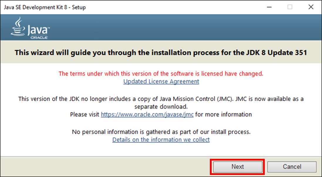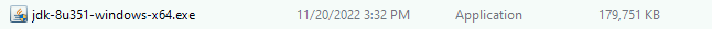 다운로드 완료된 jdk-8u351-windows-x64.exe를 실행합니다.