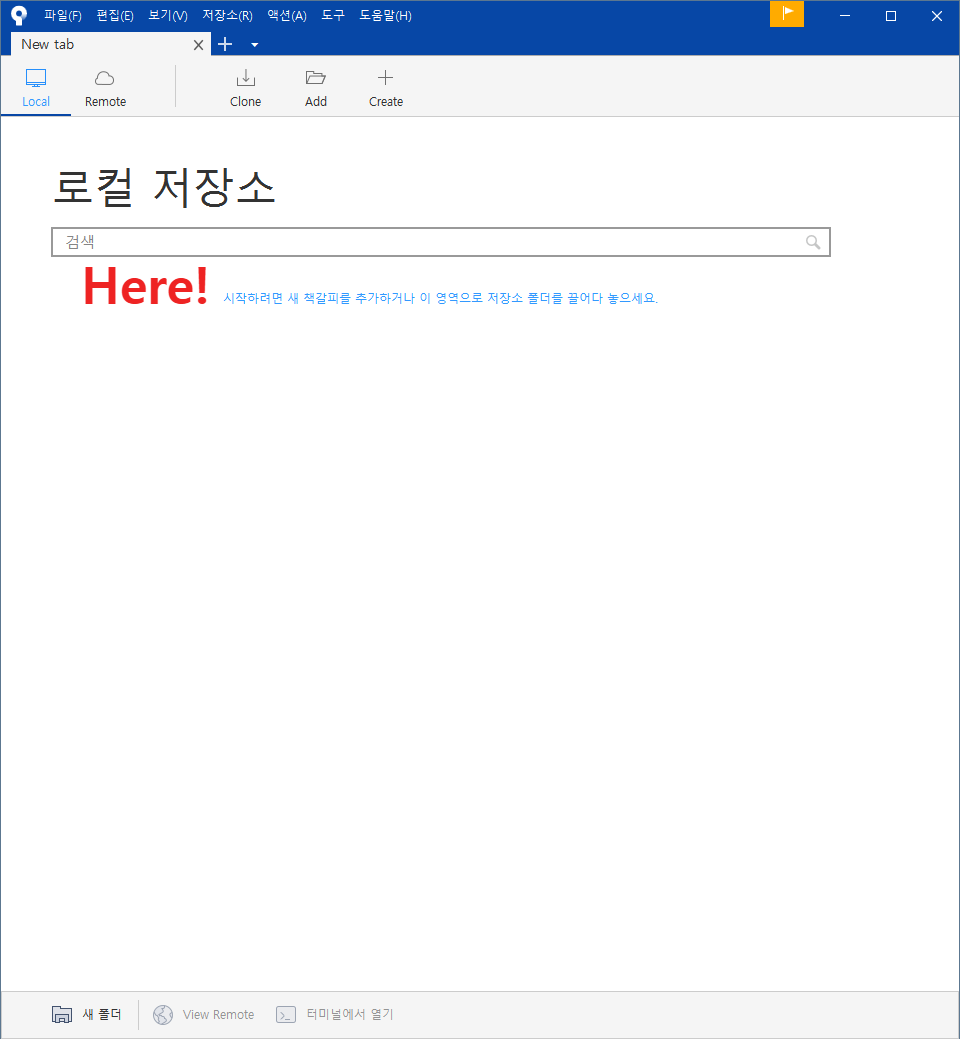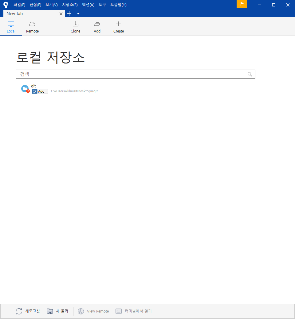 검색 아랫부분에 git으로 관리하던 폴더를 드래그해서 추가