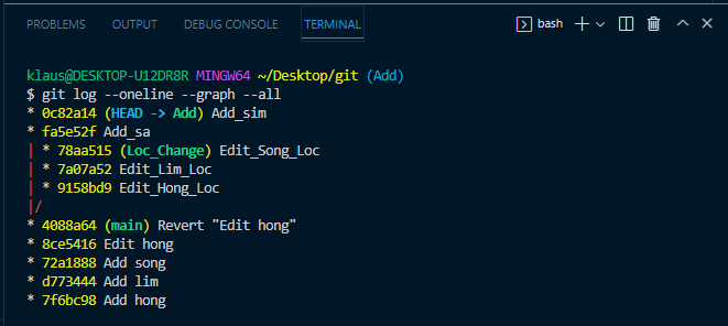 - Git Bash에서는 git log --all --online --graph로 전체 브랜치의 commit 현황을 확인 가능