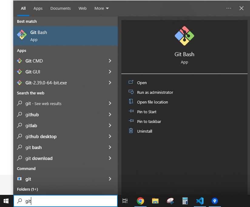 윈도우 검색창에 Git Bash 검색 후 실행