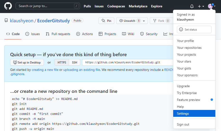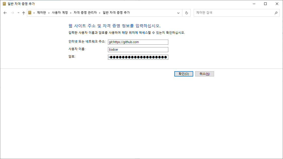 Git 독학 _ Github 토큰 생성 및 등록 (윈도우)