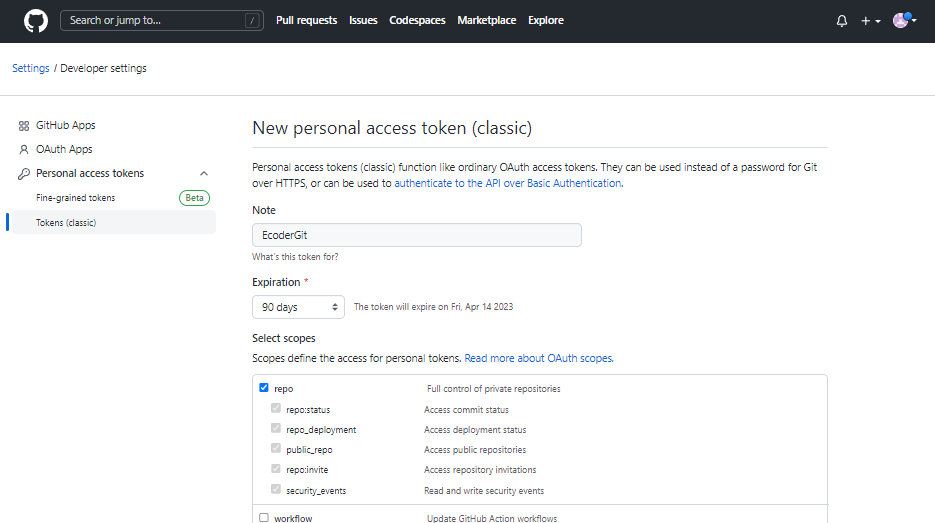 화면은 다르지만 왼쪽 위에 Generate new token - Generate new token(classic) 클릭