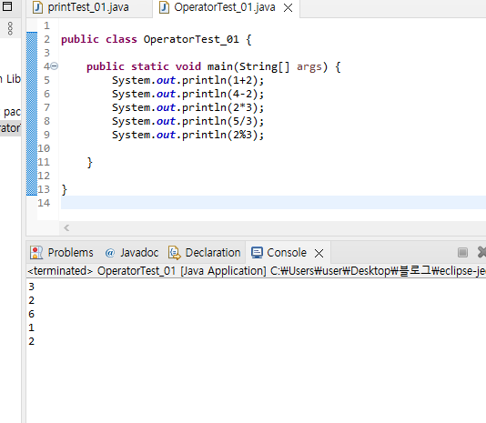 1) 산술 연산자 Test
