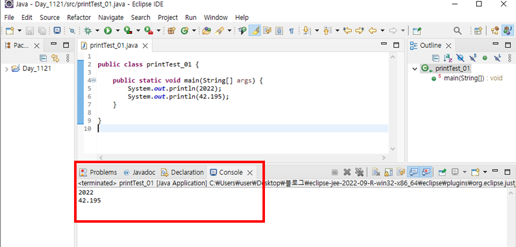 | 쉽게 따라하는 Java (자바) 독학 _ 출력문 [print, println] (1) (0) | 2022.11.21 |