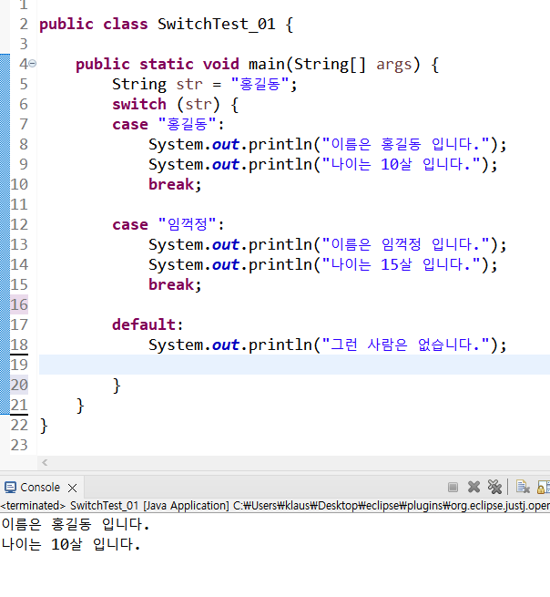 System.out.println("이름은 임꺽정 입니다.");
