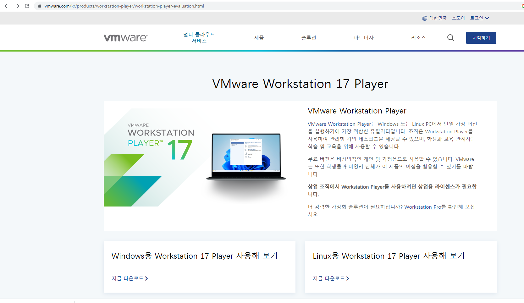 https://www.vmware.com/kr/products/workstation-player/workstation-player-evaluation.html