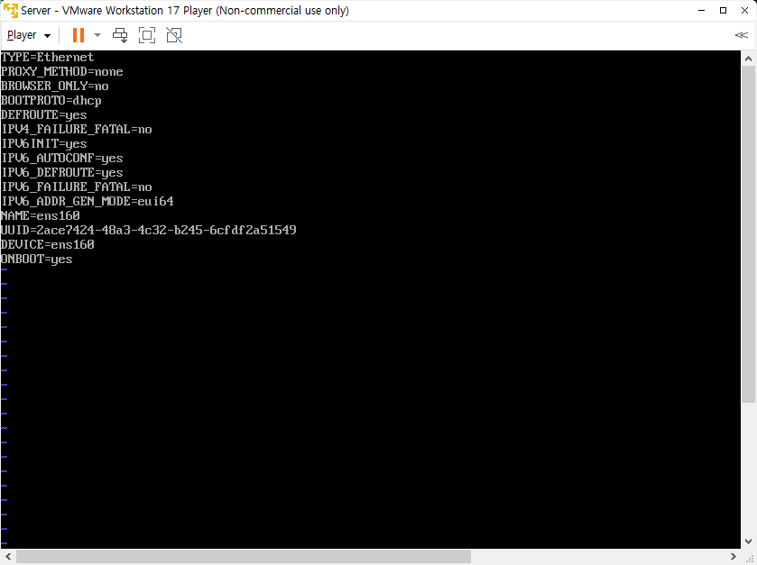 2. vim /etc/sysconfig/network-scripts/ifcfg-ens160: ens160의 설정파일 열기