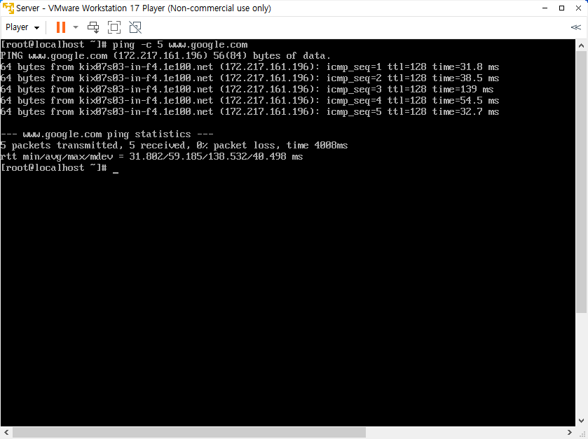 3. ping -c 5 www.google.com: 구글을 통해 인터넷 연결 상태 확인