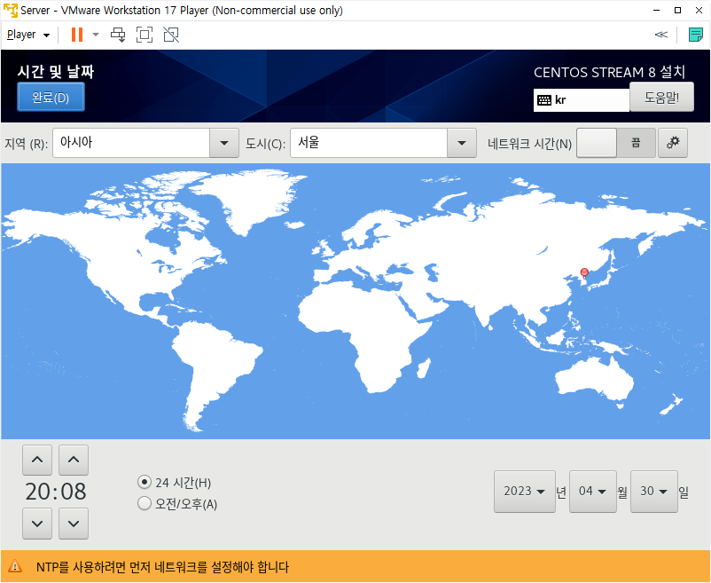 먼저 시간과 날짜에서 서울을 선택하고 완료를 누르겠습니다.