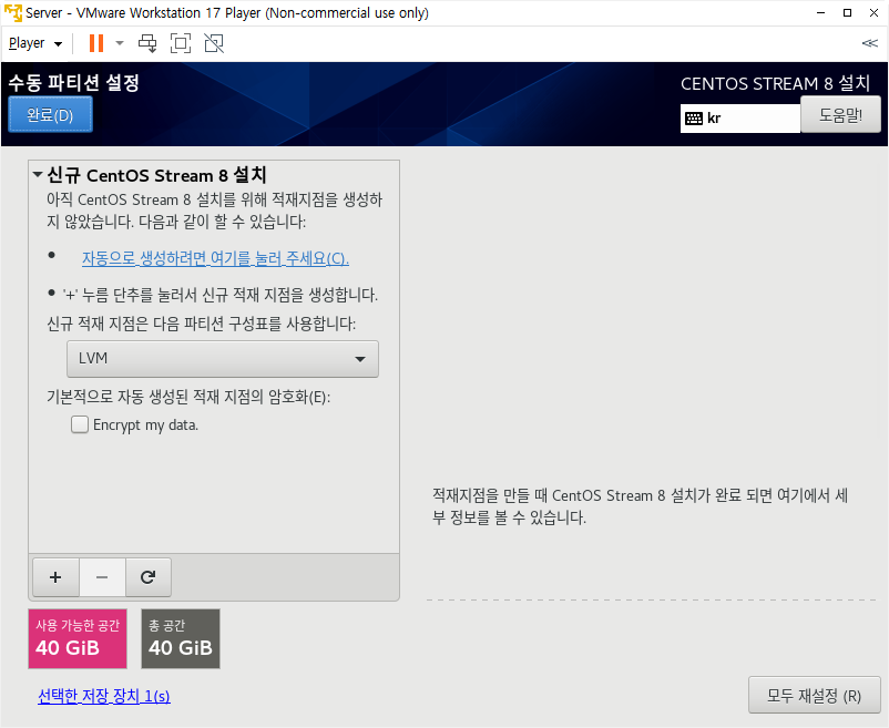 설치 목적지는 저장소 구성을 사용자 정의로 변경 후 완료