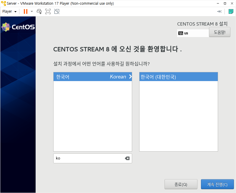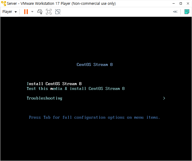 키보드로 Install CentOS Stream 8 선택 후 엔터