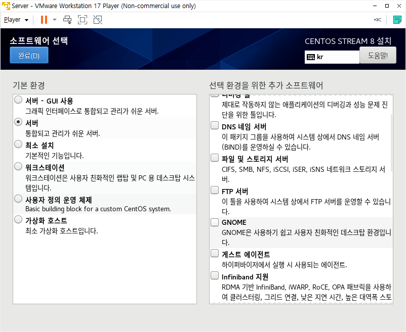 소프트웨어는 서버를 사용으로 하겠습니다.